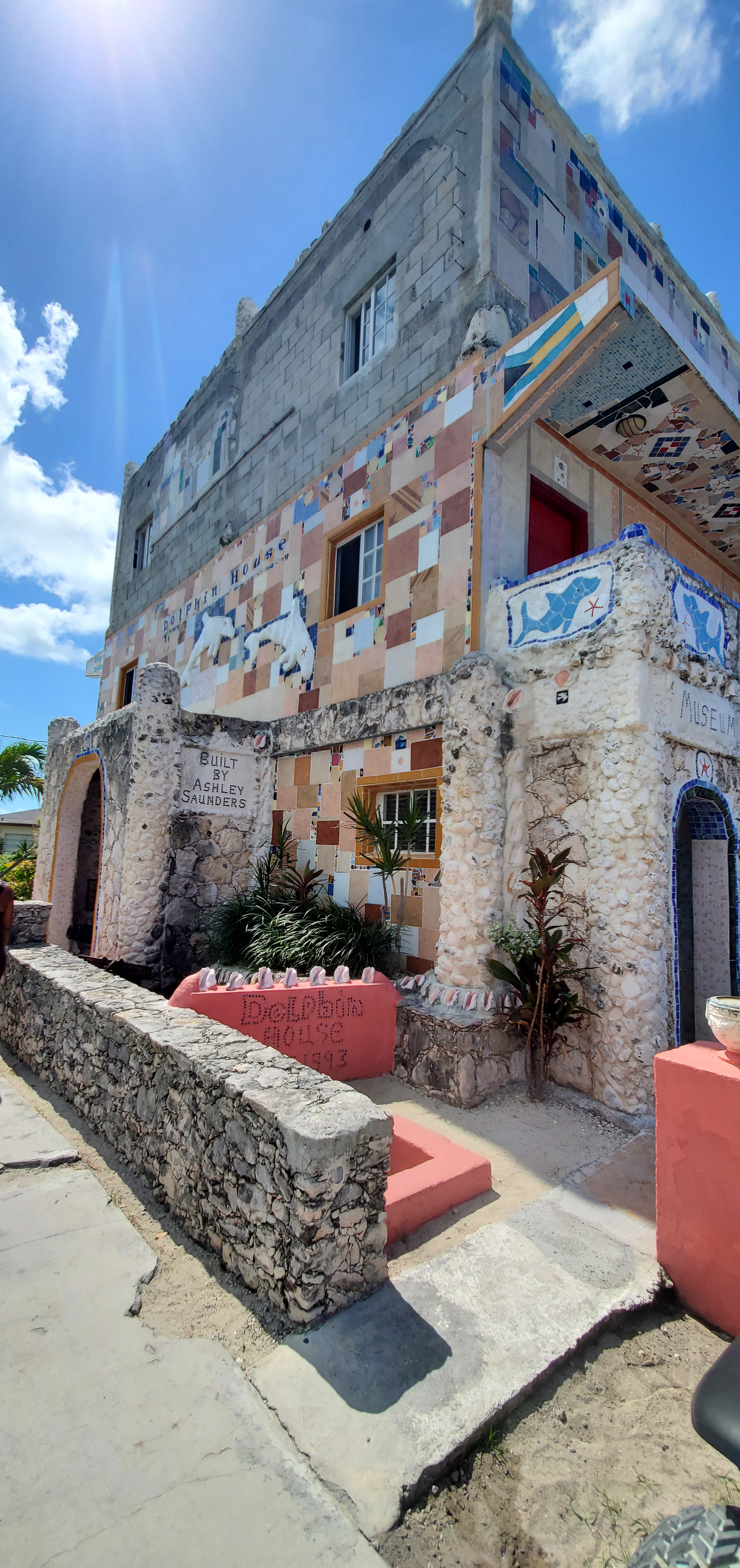 The dolphin house was created by a guy named Ashley Saunders – a local author, artist, historian and retired teacher on the island of Bimini.