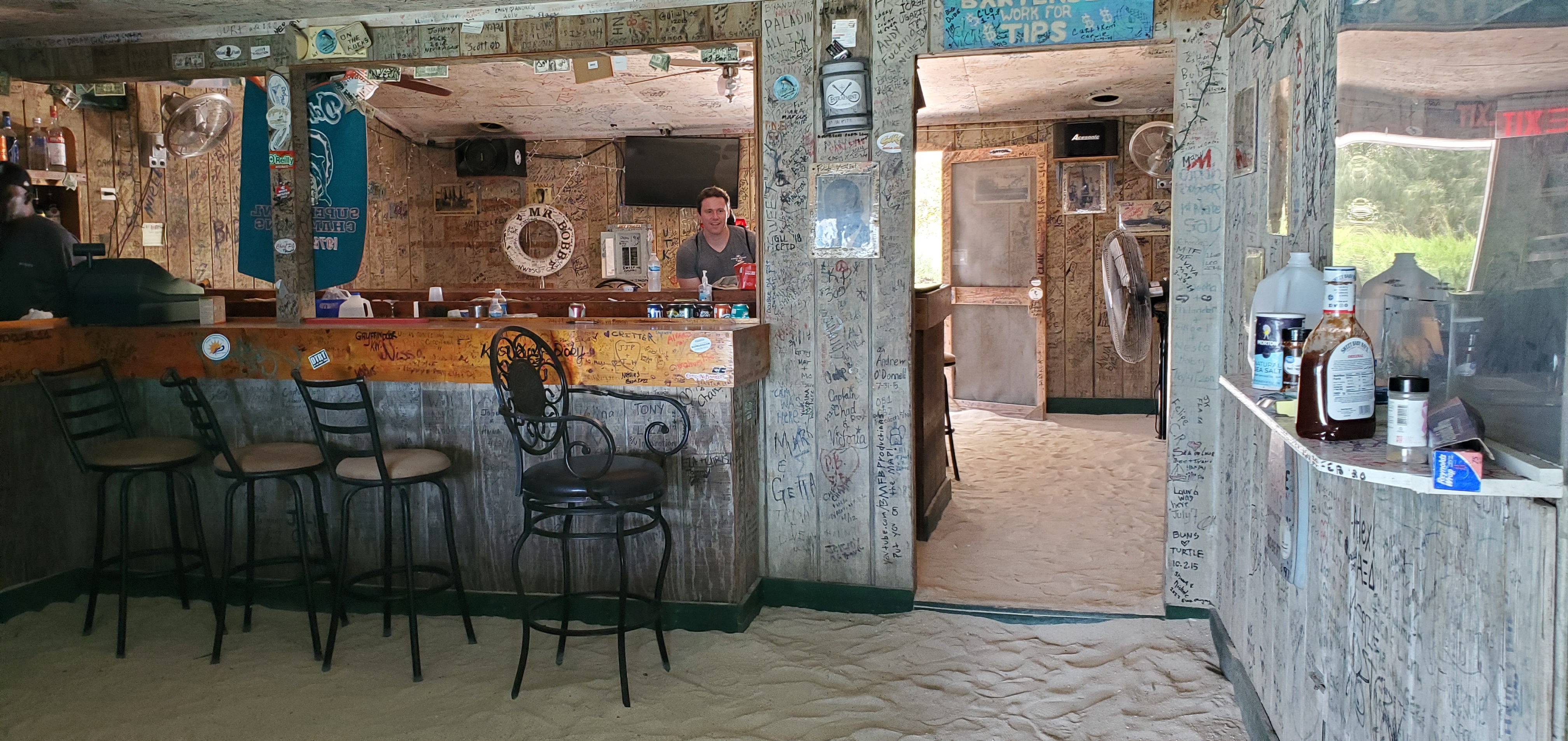 It had dollars on the ceiling, black marker signatures on the bar top & every wall, and a toes in the sand floor.