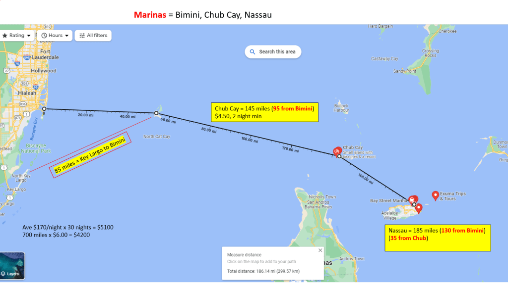 The next step plan for tomorrow is another long 100 mile day from Bimini to Chub Cay. The wind is already kicking up tonight and will be higher than the beautiful ride to Bimini, but should to be manageable.