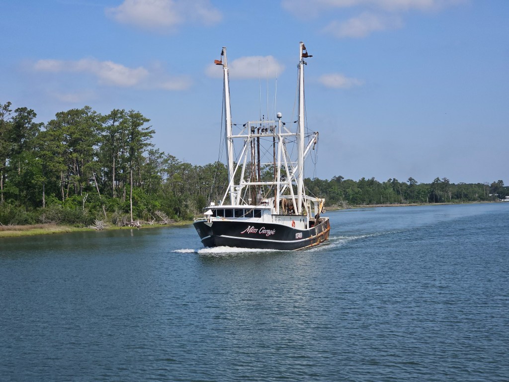 It was a very uneventful ride. We did see several very nice Sportfish Yachts docked along the way. Then we saw, what we thought was the newest, most beautiful Shrimping Boat that we had ever seen.