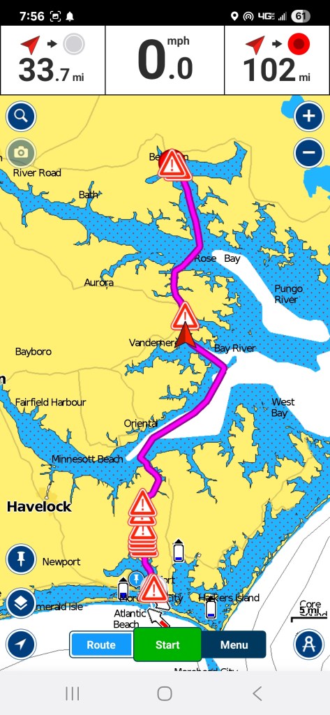 We were planning on going from Beaufort to Belhaven North Carolina, about 70 miles. But we were all a little ragged out after the start of the trip, and the long 90 mile ride into Beaufort.