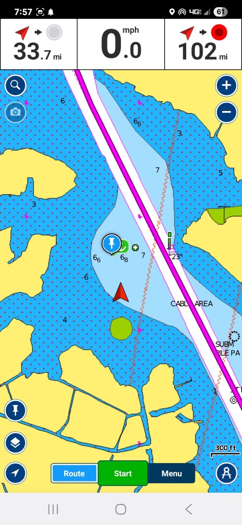 The anchorage is again very peaceful, with an occasional boat passing by on the ICW. The photos really don’t show how pretty the location is.