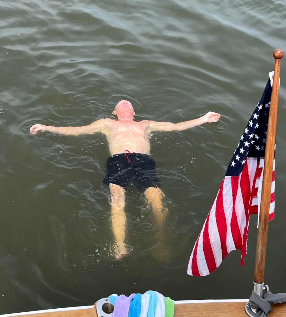 The nice thing about anchoring out, is that first thing tomorrow morning, I can go for another swim before we take off for Belhaven.