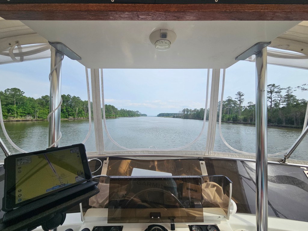 After the Narrows, we entered a very open area of water called the Pamlico River. It was quite breezy and moderately choppy, but luckily we were heading into the waves.