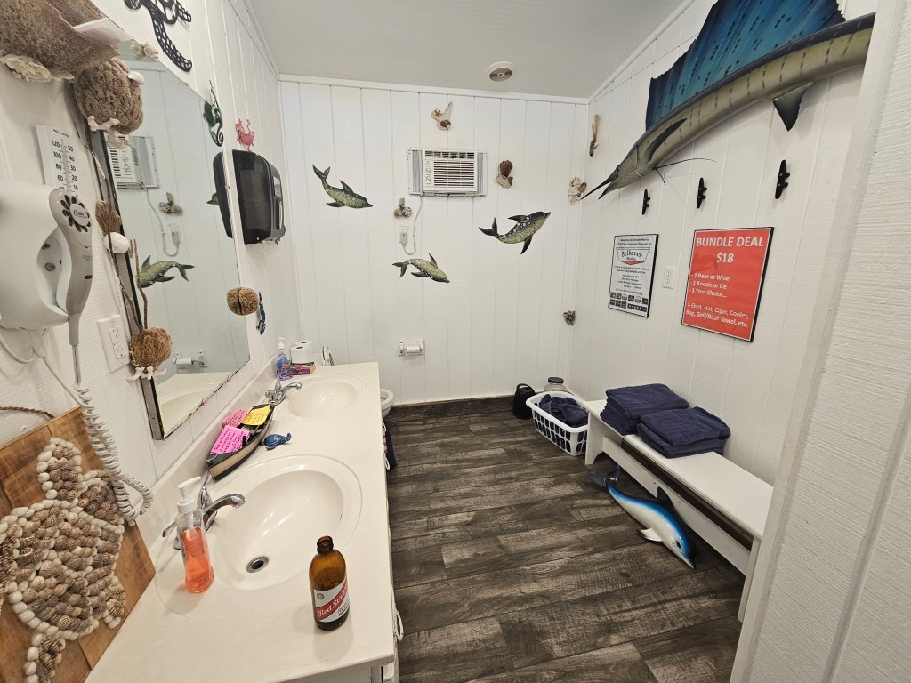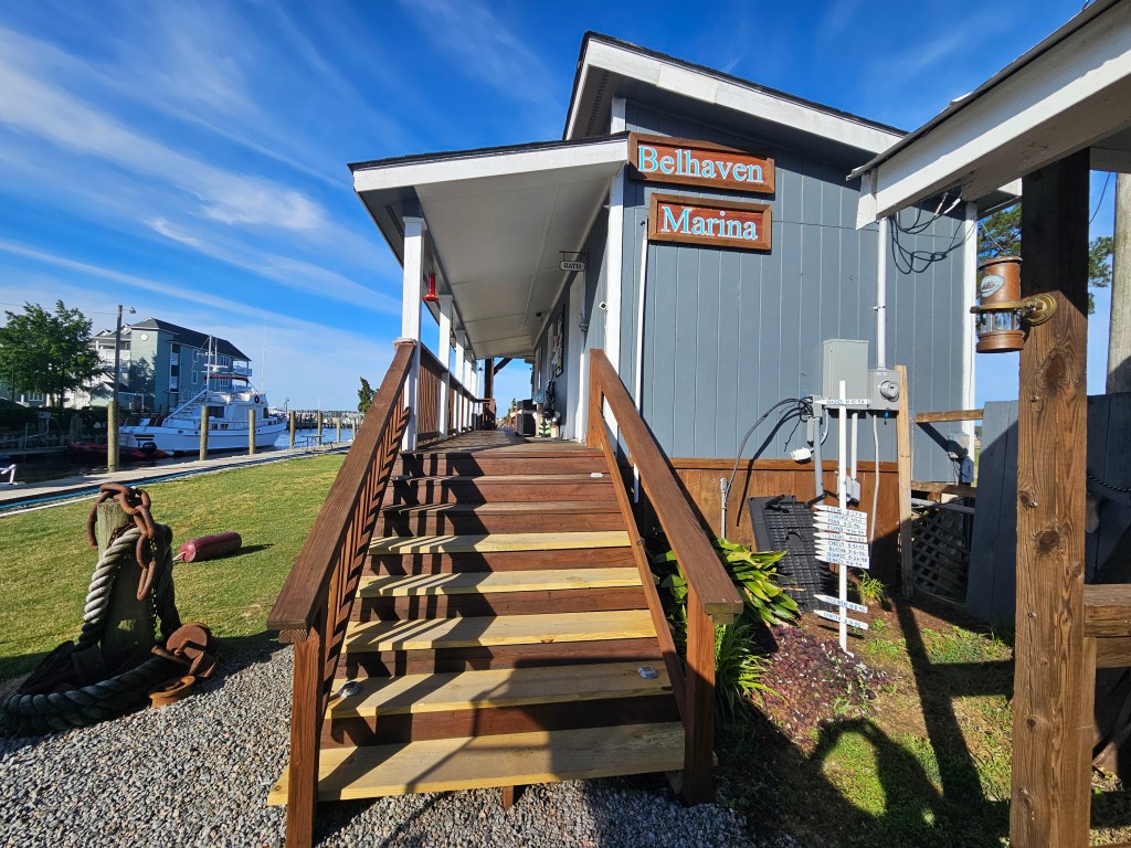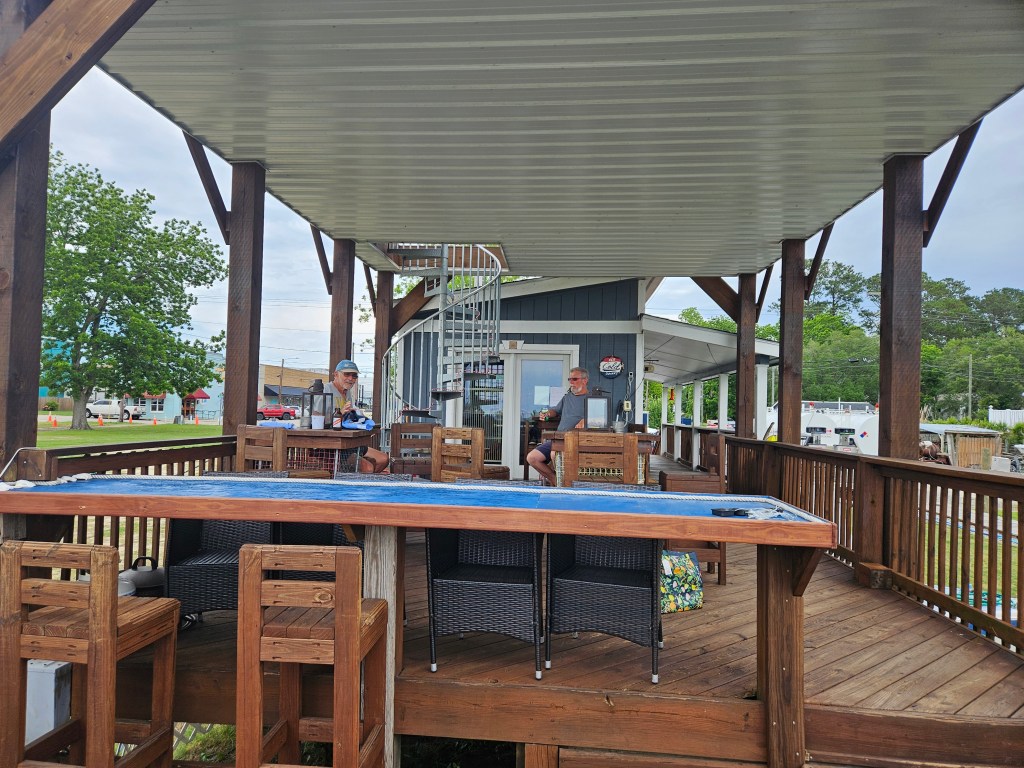 Belhaven Marina is very small, but it may be the most quaint little marina that I have ever stayed at. They have a wonderful little deck out back to socialize with other boaters, and unlike most marinas – have individual Bathrooms (most have 1 large bath room with several showers). The shower rooms have very nice nautical decorations & towels supplied by the marina. That deck out back for socializing worked very well – Jerry & I met 4 other boaters and consumed 3 Red Stripe Beers during the process 👌 . Unfortunately, Deena was doing laundry while Jerry & I were making friends.