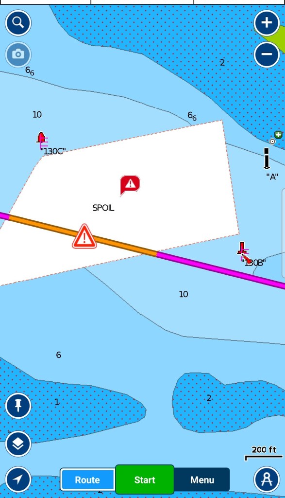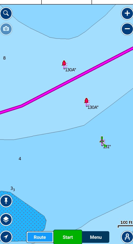 Here are some photos of the current Navionics Chart – Red Marker #132 has been replaced with Red Markers – 130, 130A, 130B, 130C.