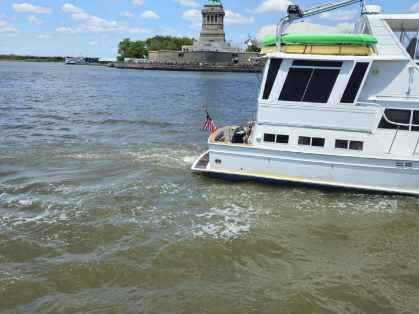 Here is a screen dump showing our anchorage location. In the screen dump – The Mahi Mahi is shown in the blue dot and you can also see our location relative to; Lady Liberty, Ellis Island, and the south tip of Manhattan.