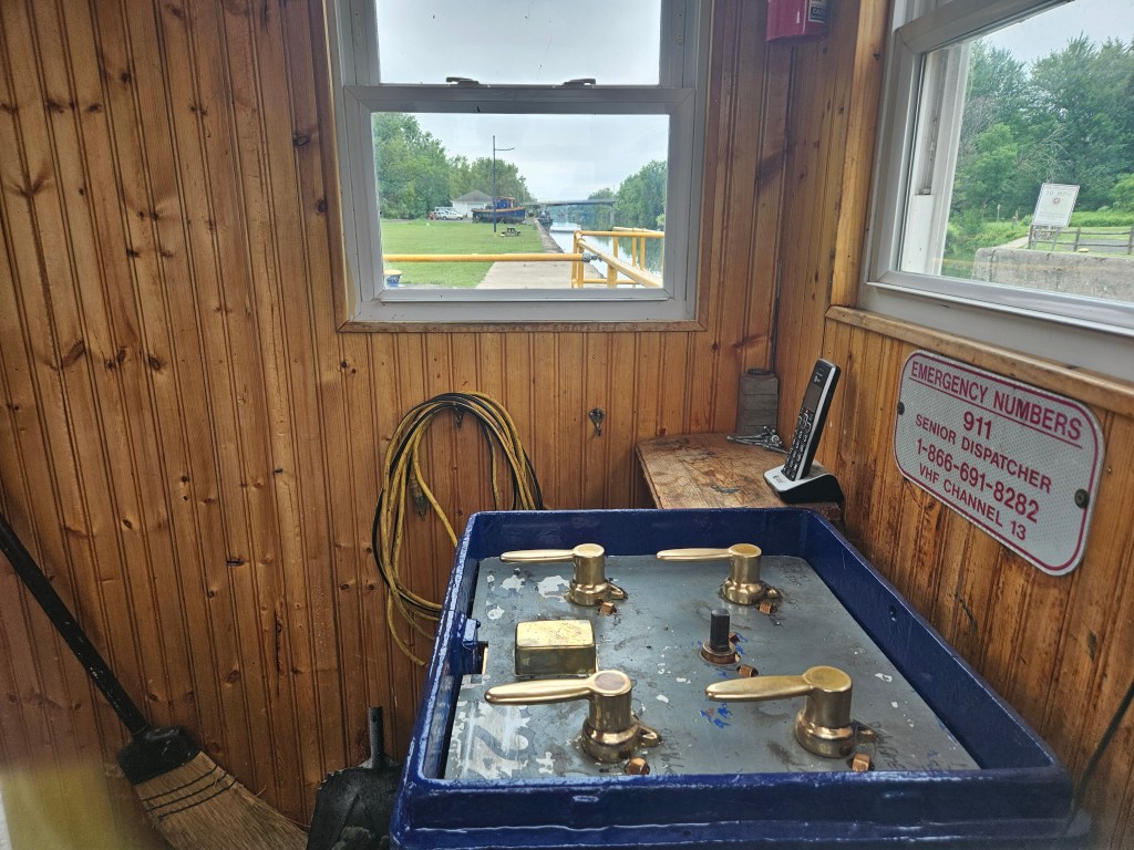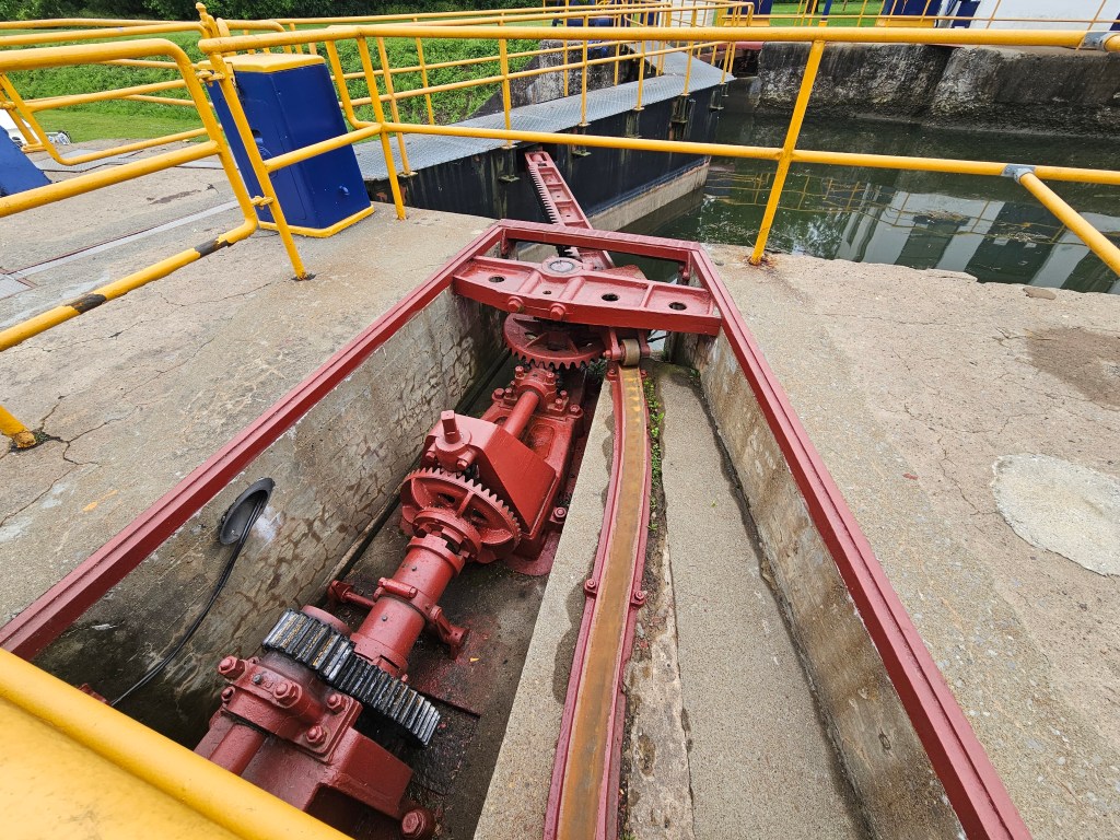 Here are some photos that we normally cannot not get because we are “IN” the Lock, not walking on top of it. Below is shown the gearing which opens/ closes the lock door & a photo of the lock operators station.