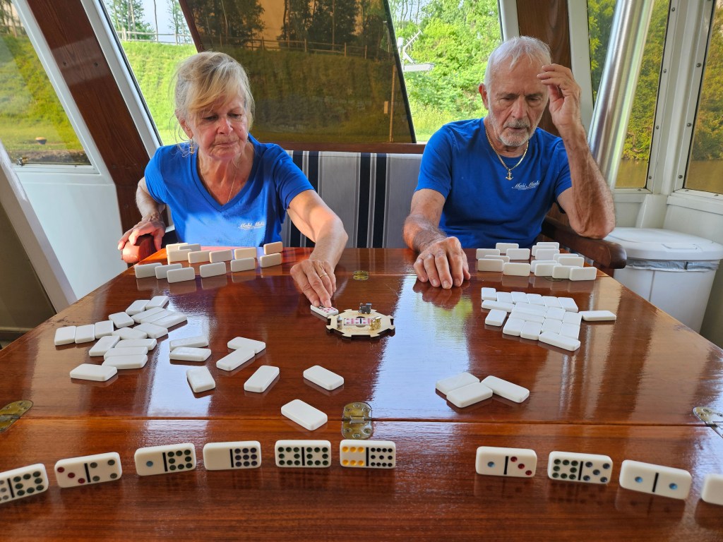 To kill all the free time we now had on our hands, we went for a walk around the lock & played the Mexican Train domino type game.