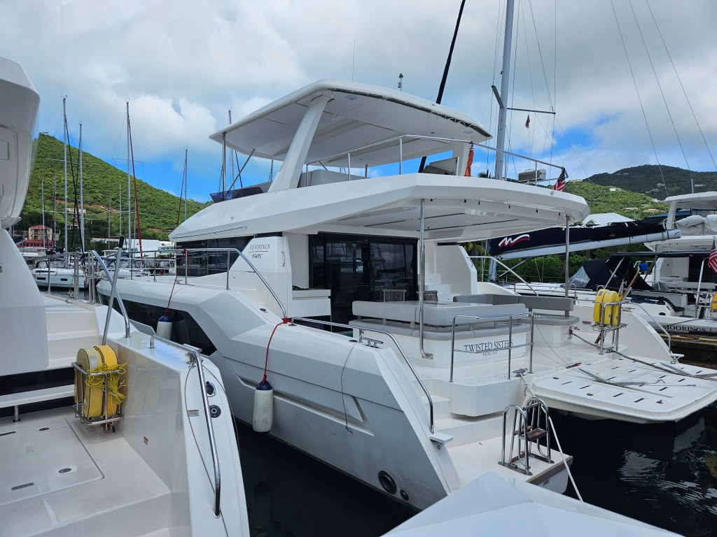 Our Vessel was rented thru a company called The Moorings, one of the biggest Yacht Charter companies in the BVI. Our Yacht was The Moorings 464PC, a new 46.5 foot Power Catamaran named Sea Senora