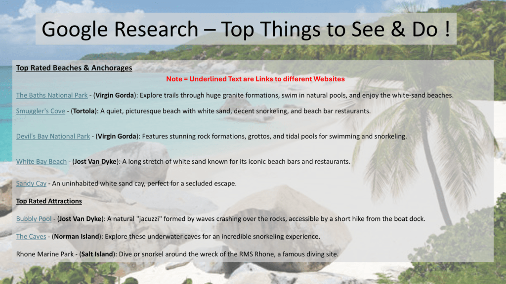 Question-3 : What are the Major Attractions to visit in the BVI ?